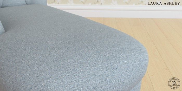 6.12.1 Buy Gloucester Button Back by Laura Ashley Chaise Longue Left Hand Kinsham Seaspray Blue Low Chrome Castor - Light Oak from the Next UK online shop Click here to use our accessible website