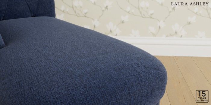 6.12.1 Buy Gloucester Button Back by Laura Ashley Chaise Longue Left Hand Nantmor Midnight Navy Low Brass Castor - Light Oak from the Next UK online shop Click here to use our accessible website