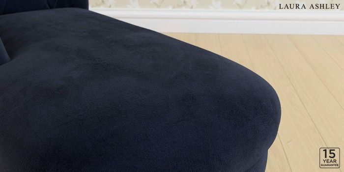 6.12.1 Buy Gloucester Button Back by Laura Ashley Chaise Longue Left Hand Orla Midnight Navy Low Brass Castor - Light Oak from the Next UK online shop Click here to use our accessible website
