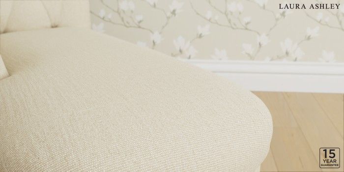 6.12.1 Buy Gloucester Button Back by Laura Ashley Chaise Longue Left Hand Orla Oyster Natural Low Chrome Castor - Black from the Next UK online shop Click here to use our accessible website