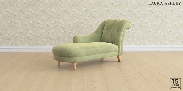 6.12.1 Buy Gloucester Button Back by Laura Ashley Chaise Longue Left Hand Orla Pale Hedgerow Green Low Turned - Light Oak from the Next UK online shop Click here to use our accessible website