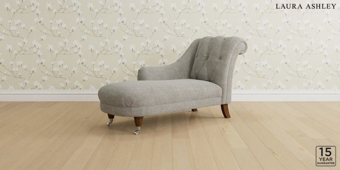 6.12.1 Buy Gloucester Button Back by Laura Ashley Chaise Longue Left Hand Orla Pale Steel Grey Low Brass Castor - Teak from the Next UK online shop Click here to use our accessible website
