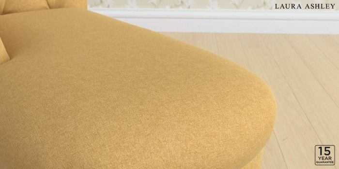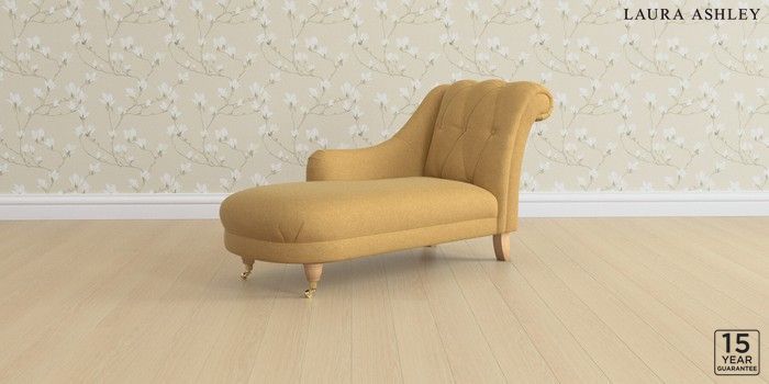 6.12.1 Buy Gloucester Button Back by Laura Ashley Chaise Longue Left Hand Peyton Ochre Yellow Low Brass Castor - Light Oak from the Next UK online shop Click here to use our accessible website
