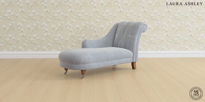 6.12.1 Buy Gloucester Button Back by Laura Ashley Chaise Longue Left Hand Peyton Powder Blue Low Chrome Castor - Teak from the Next UK online shop Click here to use our accessible website