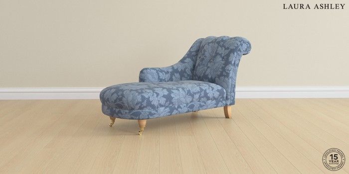 7.2.6 Buy Gloucester Button Back by Laura Ashley Chaise Longue Left Hand Tamara Dusky Seaspray Blue Low Brass Castor - Light Oak from the Next UK online shop Click here to use our accessible website