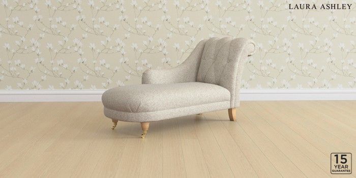 6.12.1 Buy Gloucester Button Back by Laura Ashley Chaise Longue Left Hand Tichwell Stone Natural Low Brass Castor - Light Oak from the Next UK online shop Click here to use our accessible website