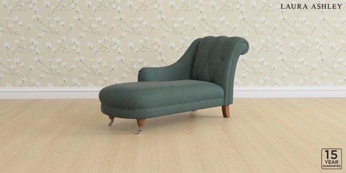6.12.1 Buy Gloucester Button Back by Laura Ashley Chaise Longue Left Hand Wooton Forest Green Low Chrome Castor - Teak from the Next UK online shop Click here to use our accessible website