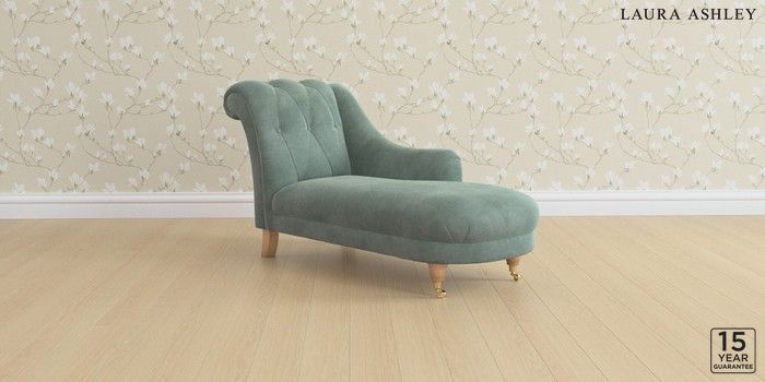 6.12.1 Buy Gloucester Button Back by Laura Ashley Chaise Longue Right Hand Ailsworth Fern Green Low Brass Castor - Light Oak from the Next UK online shop Click here to use our accessible website