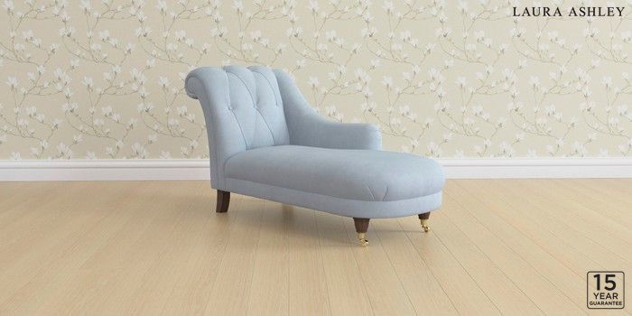 6.12.1 Buy Gloucester Button Back by Laura Ashley Chaise Longue Right Hand Ailsworth Newport Blue Low Brass Castor - Chestnut from the Next UK online shop Click here to use our accessible website
