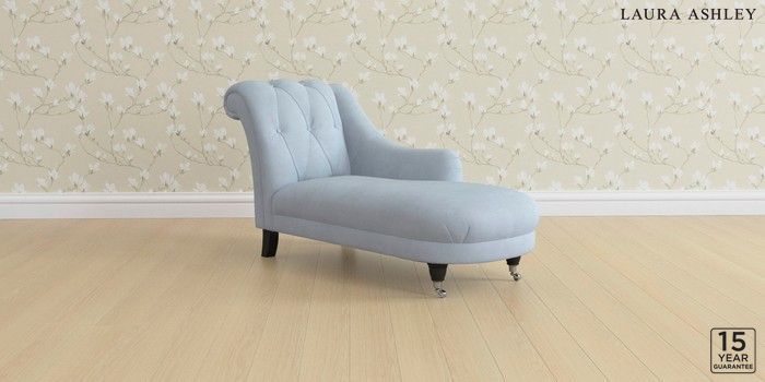 6.12.1 Buy Gloucester Button Back by Laura Ashley Chaise Longue Right Hand Ailsworth Newport Blue Low Chrome Castor - Black from the Next UK online shop Click here to use our accessible website