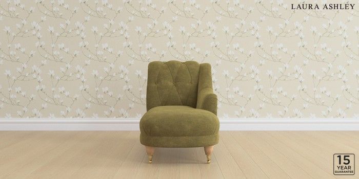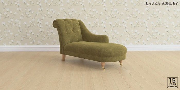 6.12.1 Buy Gloucester Button Back by Laura Ashley Chaise Longue Right Hand Alwyn Velvet Olive Green Low Brass Castor - Light Oak from the Next UK online shop Click here to use our accessible website