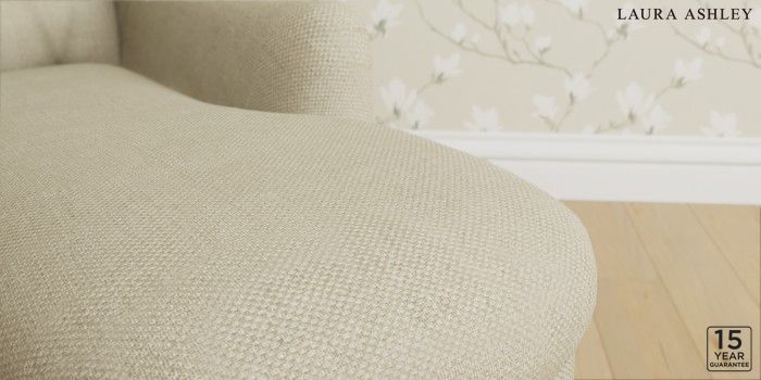 6.12.1 Buy Gloucester Button Back by Laura Ashley Chaise Longue Right Hand Anneliese Natural Low Brass Castor - Light Oak from the Next UK online shop Click here to use our accessible website