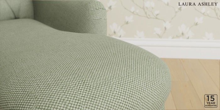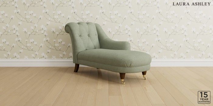 6.12.1 Buy Gloucester Button Back by Laura Ashley Chaise Longue Right Hand Anneliese Sage Green Low Brass Castor - Teak from the Next UK online shop Click here to use our accessible website