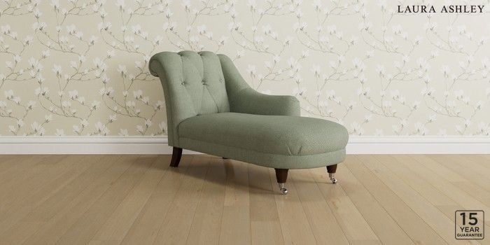 6.12.1 Buy Gloucester Button Back by Laura Ashley Chaise Longue Right Hand Anneliese Sage Green Low Chrome Castor - Chestnut from the Next UK online shop Click here to use our accessible website