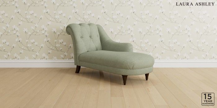 6.12.1 Buy Gloucester Button Back by Laura Ashley Chaise Longue Right Hand Anneliese Sage Green Low Turned - Chestnut from the Next UK online shop Click here to use our accessible website