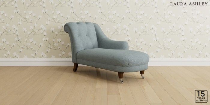 6.12.1 Buy Gloucester Button Back by Laura Ashley Chaise Longue Right Hand Anneliese Seaspray Blue Low Brass Castor - Teak from the Next UK online shop Click here to use our accessible website