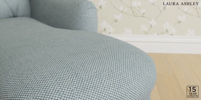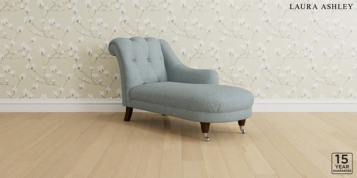 6.12.1 Buy Gloucester Button Back by Laura Ashley Chaise Longue Right Hand Anneliese Seaspray Blue Low Chrome Castor - Chestnut from the Next UK online shop Click here to use our accessible website