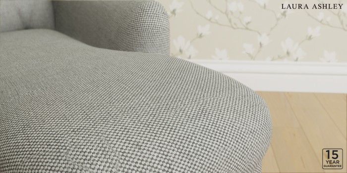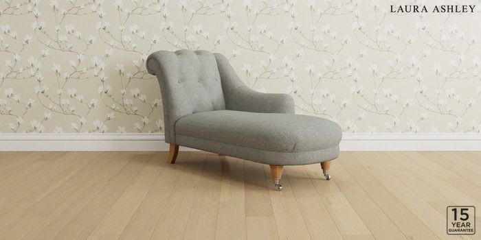 6.12.1 Buy Gloucester Button Back by Laura Ashley Chaise Longue Right Hand Anneliese Steel Grey Low Brass Castor - Light Oak from the Next UK online shop Click here to use our accessible website