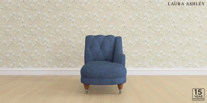 6.12.1 Buy Gloucester Button Back by Laura Ashley Chaise Longue Right Hand Bainton Midnight Navy Low Chrome Castor - Teak from the Next UK online shop Click here to use our accessible website