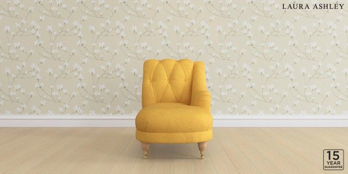 6.12.1 Buy Gloucester Button Back by Laura Ashley Chaise Longue Right Hand Bainton Ochre Yellow Low Brass Castor - Light Oak from the Next UK online shop Click here to use our accessible website