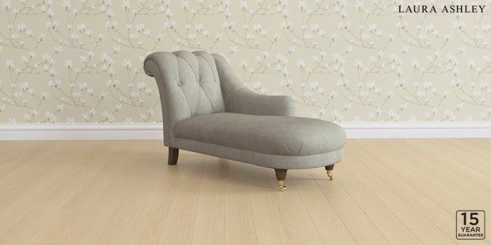 6.12.1 Buy Gloucester Button Back by Laura Ashley Chaise Longue Right Hand Bainton Pale Steel Grey Low Brass Castor - Chestnut from the Next UK online shop Click here to use our accessible website