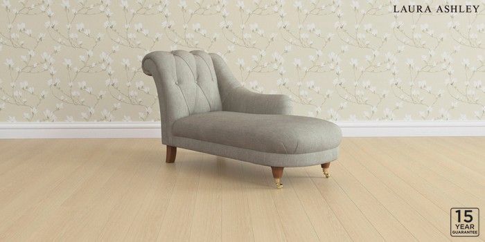 6.12.1 Buy Gloucester Button Back by Laura Ashley Chaise Longue Right Hand Bainton Pale Steel Grey Low Brass Castor - Teak from the Next UK online shop Click here to use our accessible website