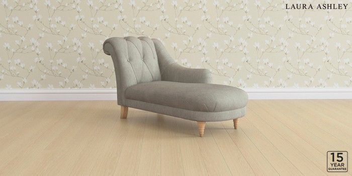 6.12.1 Buy Gloucester Button Back by Laura Ashley Chaise Longue Right Hand Bainton Pale Steel Grey Low Turned - Light Oak from the Next UK online shop Click here to use our accessible website