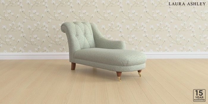 6.12.1 Buy Gloucester Button Back by Laura Ashley Chaise Longue Right Hand Borwick Newport Blue Low Brass Castor - Teak from the Next UK online shop Click here to use our accessible website