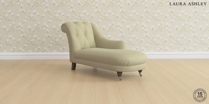 7.2.6 Buy Gloucester Button Back by Laura Ashley Chaise Longue Right Hand Chequers Hedgerow Green Low Chrome Castor - Chestnut from the Next UK online shop Click here to use our accessible website