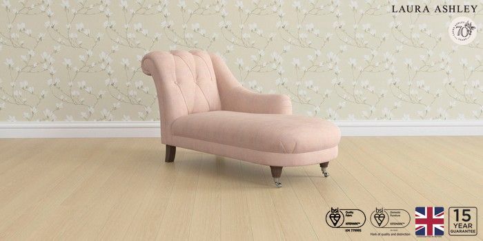6.12.1 Buy Gloucester Button Back by Laura Ashley Chaise Longue Right Hand Edwin Chenille Blush Pink Low Chrome Castor - Chestnut from the Next UK online shop Click here to use our accessible website