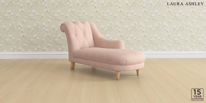 6.12.1 Buy Gloucester Button Back by Laura Ashley Chaise Longue Right Hand Edwin Chenille Blush Pink Low Turned - Light Oak from the Next UK online shop Click here to use our accessible website