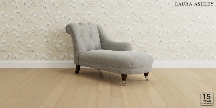 6.12.1 Buy Gloucester Button Back by Laura Ashley Chaise Longue Right Hand Edwin Chenille Silver Grey Low Brass Castor - Chestnut from the Next UK online shop Click here to use our accessible website