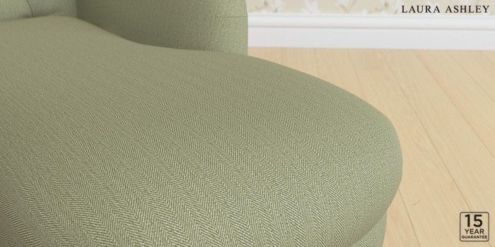 6.12.1 Buy Gloucester Button Back by Laura Ashley Chaise Longue Right Hand Edwin Herringbone Hedgerow Green Low Brass Castor - Light Oak from the Next UK online shop Click here to use our accessible website