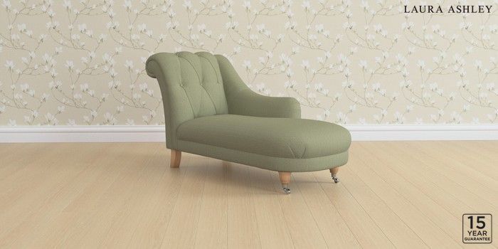 6.12.1 Buy Gloucester Button Back by Laura Ashley Chaise Longue Right Hand Edwin Herringbone Hedgerow Green Low Chrome Castor - Light Oak from the Next UK online shop Click here to use our accessible website