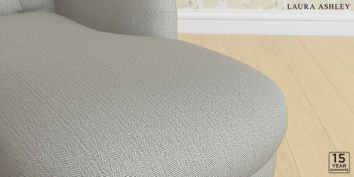 6.12.1 Buy Gloucester Button Back by Laura Ashley Chaise Longue Right Hand Edwin Herringbone Pale Steel Grey Low Chrome Castor - Light Oak from the Next UK online shop Click here to use our accessible website