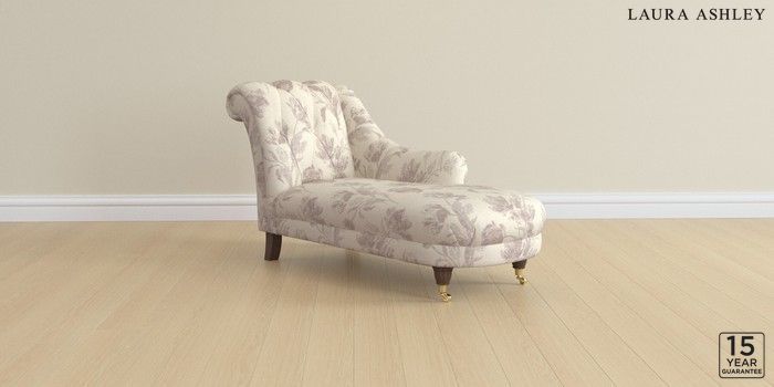 6.12.1 Buy Gloucester Button Back by Laura Ashley Chaise Longue Right Hand Gosford Weave Dusky Plum Purple Low Brass Castor - Chestnut from the Next UK online shop Click here to use our accessible website