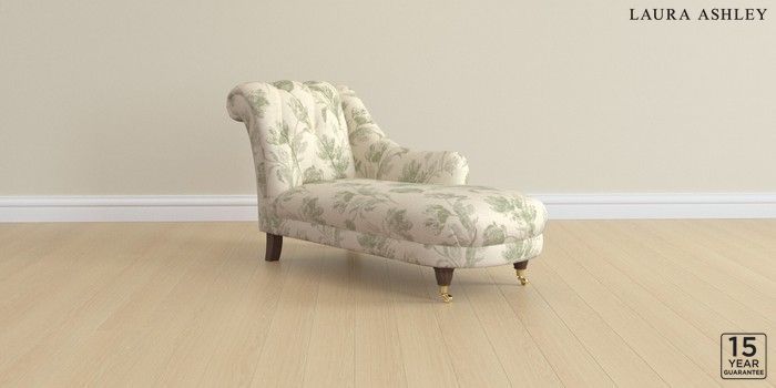 6.12.1 Buy Gloucester Button Back by Laura Ashley Chaise Longue Right Hand Gosford Weave Sage Green Low Brass Castor - Chestnut from the Next UK online shop Click here to use our accessible website