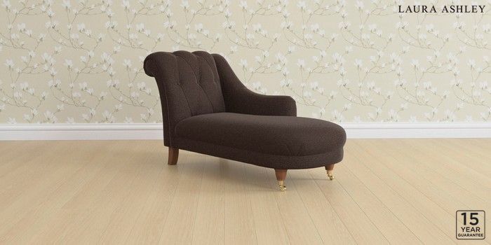 6.12.1 Buy Gloucester Button Back by Laura Ashley Chaise Longue Right Hand Harley Chestnut Brown Low Brass Castor - Teak from the Next UK online shop Click here to use our accessible website