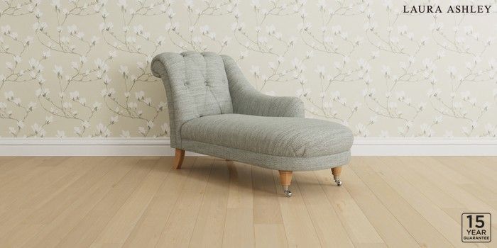 6.12.1 Buy Gloucester Button Back by Laura Ashley Chaise Longue Right Hand Harley Dove Grey Low Chrome Castor - Light Oak from the Next UK online shop Click here to use our accessible website