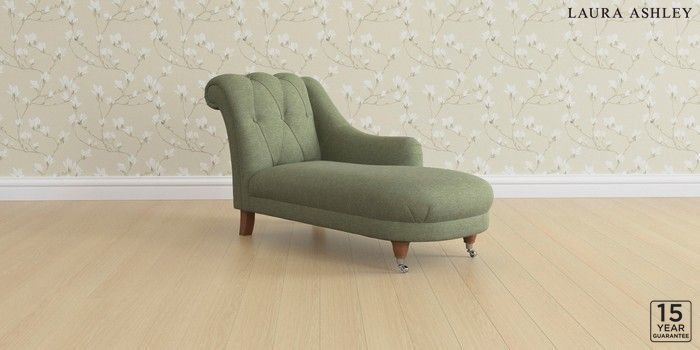 6.12.1 Buy Gloucester Button Back by Laura Ashley Chaise Longue Right Hand Harley Moss Green Low Chrome Castor - Teak from the Next UK online shop Click here to use our accessible website