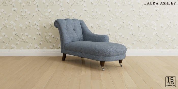 6.12.1 Buy Gloucester Button Back by Laura Ashley Chaise Longue Right Hand Harley Seaspray Blue Low Chrome Castor - Chestnut from the Next UK online shop Click here to use our accessible website