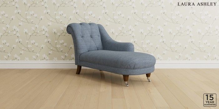 6.12.1 Buy Gloucester Button Back by Laura Ashley Chaise Longue Right Hand Harley Seaspray Blue Low Chrome Castor - Teak from the Next UK online shop Click here to use our accessible website