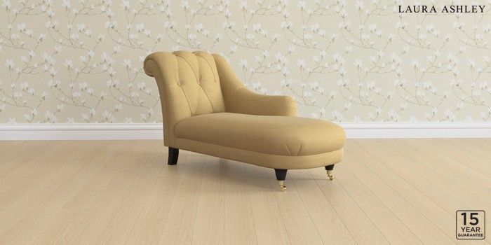 6.12.1 Buy Gloucester Button Back by Laura Ashley Chaise Longue Right Hand Kinsham Ochre Yellow Low Brass Castor - Black from the Next UK online shop Click here to use our accessible website