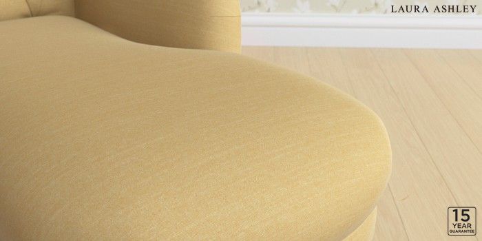 6.12.1 Buy Gloucester Button Back by Laura Ashley Chaise Longue Right Hand Kinsham Ochre Yellow Low Brass Castor - Chestnut from the Next UK online shop Click here to use our accessible website