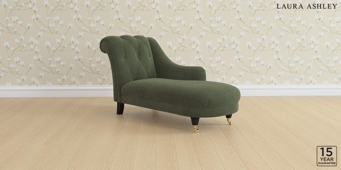 6.12.13 Buy Gloucester Button Back by Laura Ashley Chaise Longue Right Hand Lundar Chenille Ivy Green Low Brass Castor - Black from the Next UK online shop Click here to use our accessible website