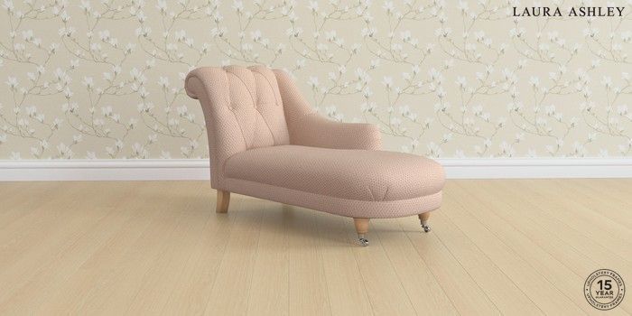 6.12.1 Buy Gloucester Button Back by Laura Ashley Chaise Longue Right Hand Melbreak Geo Chalk Pink Low Chrome Castor - Light Oak from the Next UK online shop Click here to use our accessible website