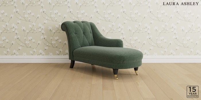 6.12.1 Buy Gloucester Button Back by Laura Ashley Chaise Longue Right Hand Nantmor Fern Green Low Brass Castor - Black from the Next UK online shop Click here to use our accessible website