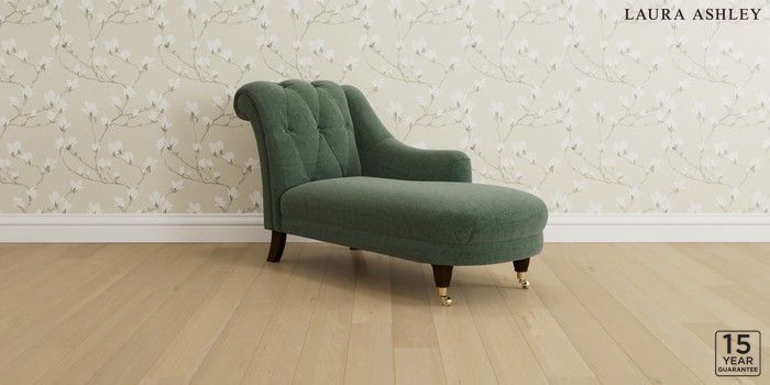 6.12.1 Buy Gloucester Button Back by Laura Ashley Chaise Longue Right Hand Nantmor Fern Green Low Brass Castor - Chestnut from the Next UK online shop Click here to use our accessible website