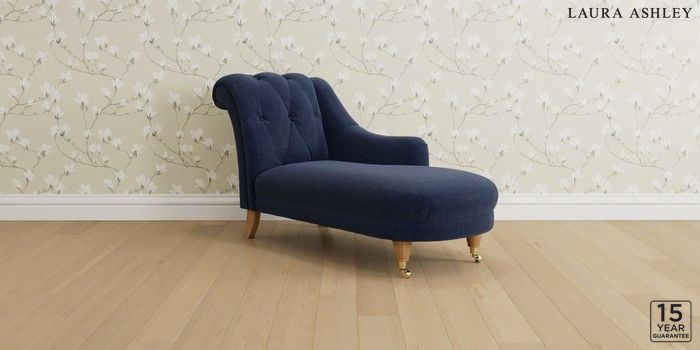 6.12.1 Buy Gloucester Button Back by Laura Ashley Chaise Longue Right Hand Nantmor Midnight Navy Low Brass Castor - Light Oak from the Next UK online shop Click here to use our accessible website