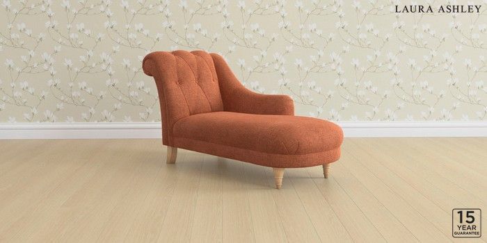 6.12.1 Buy Gloucester Button Back by Laura Ashley Chaise Longue Right Hand Nantmor Rust Orange Low Turned - Light Oak from the Next UK online shop Click here to use our accessible website